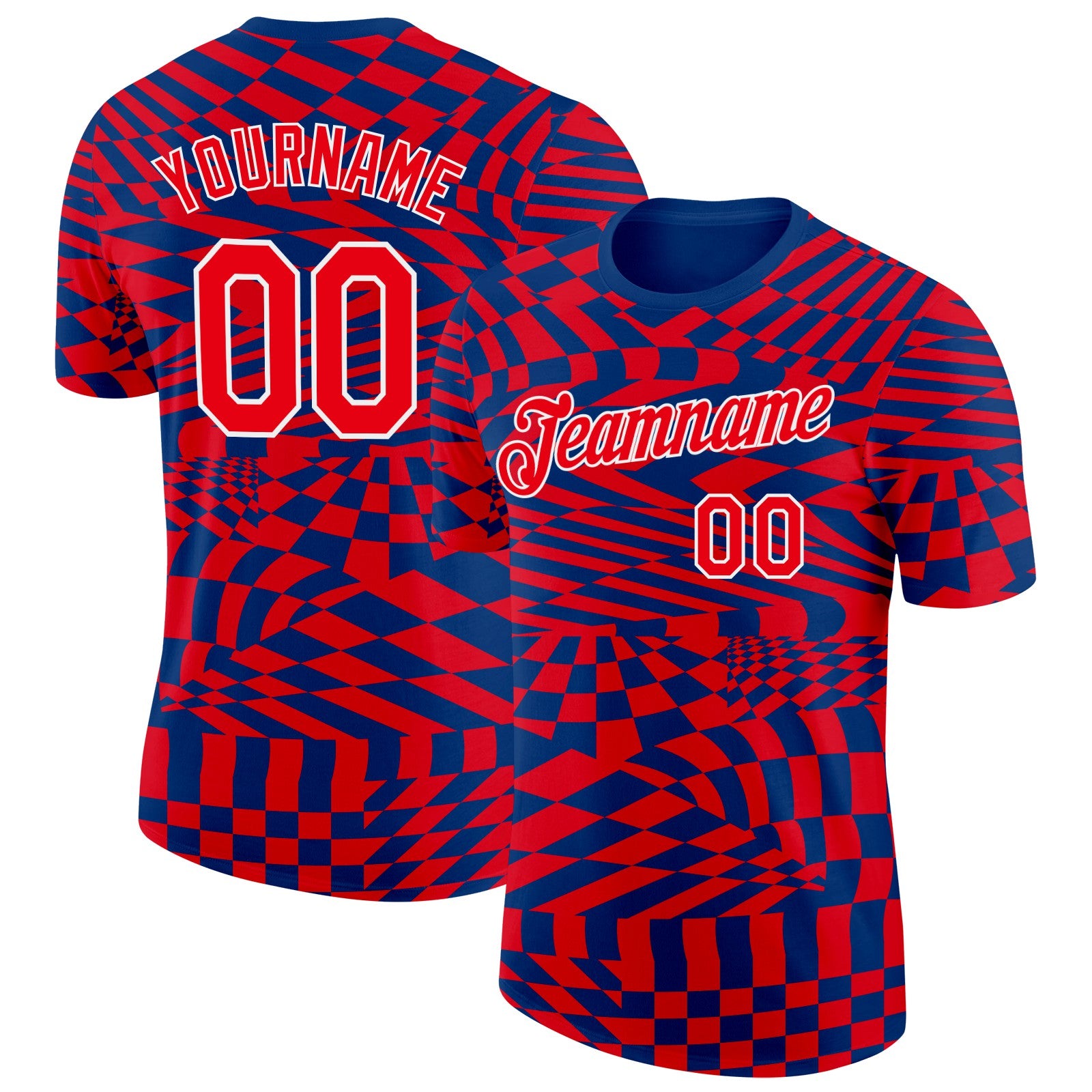 Custom US Navy Blue Fire Red-White Croatia Plaid Performance T-Shirt
