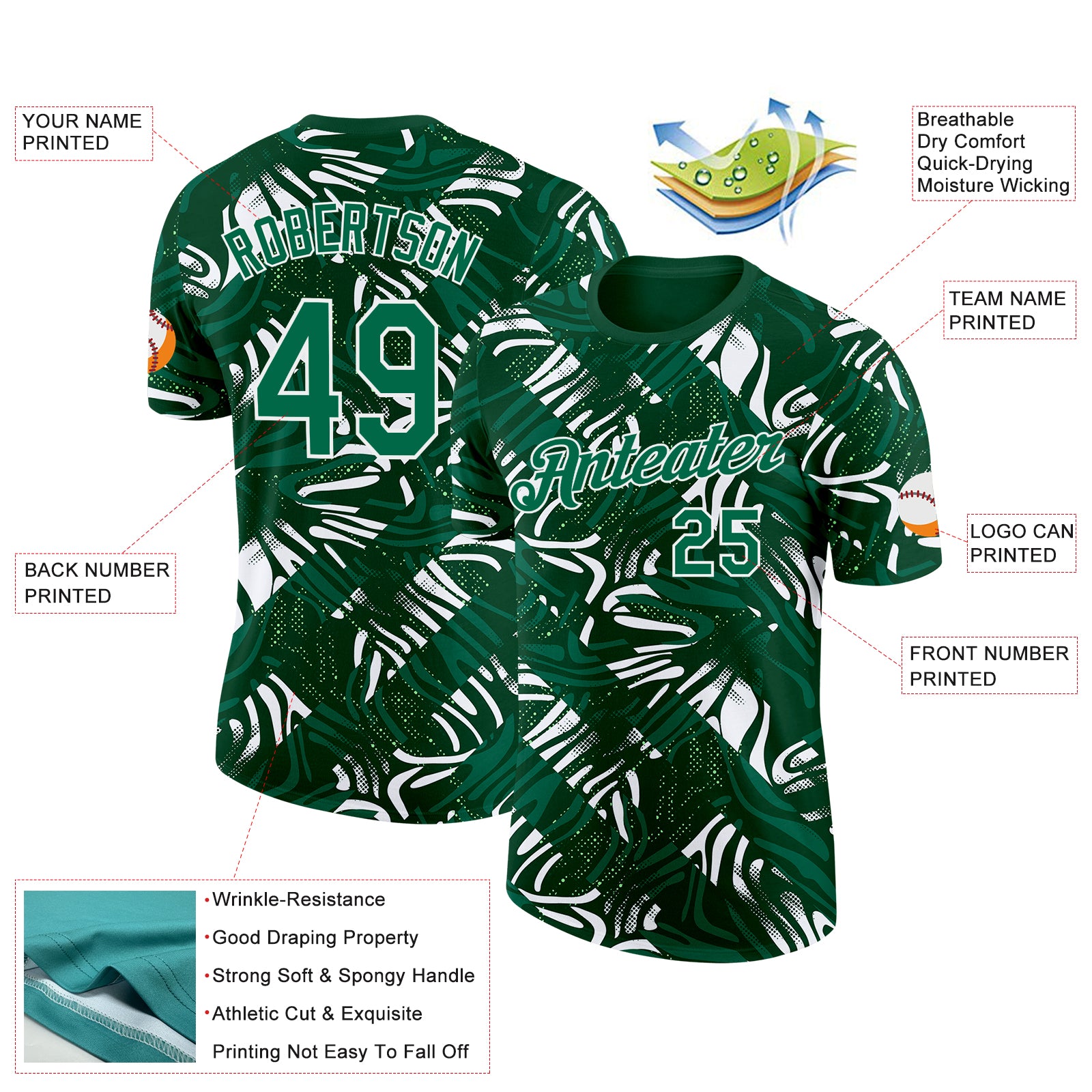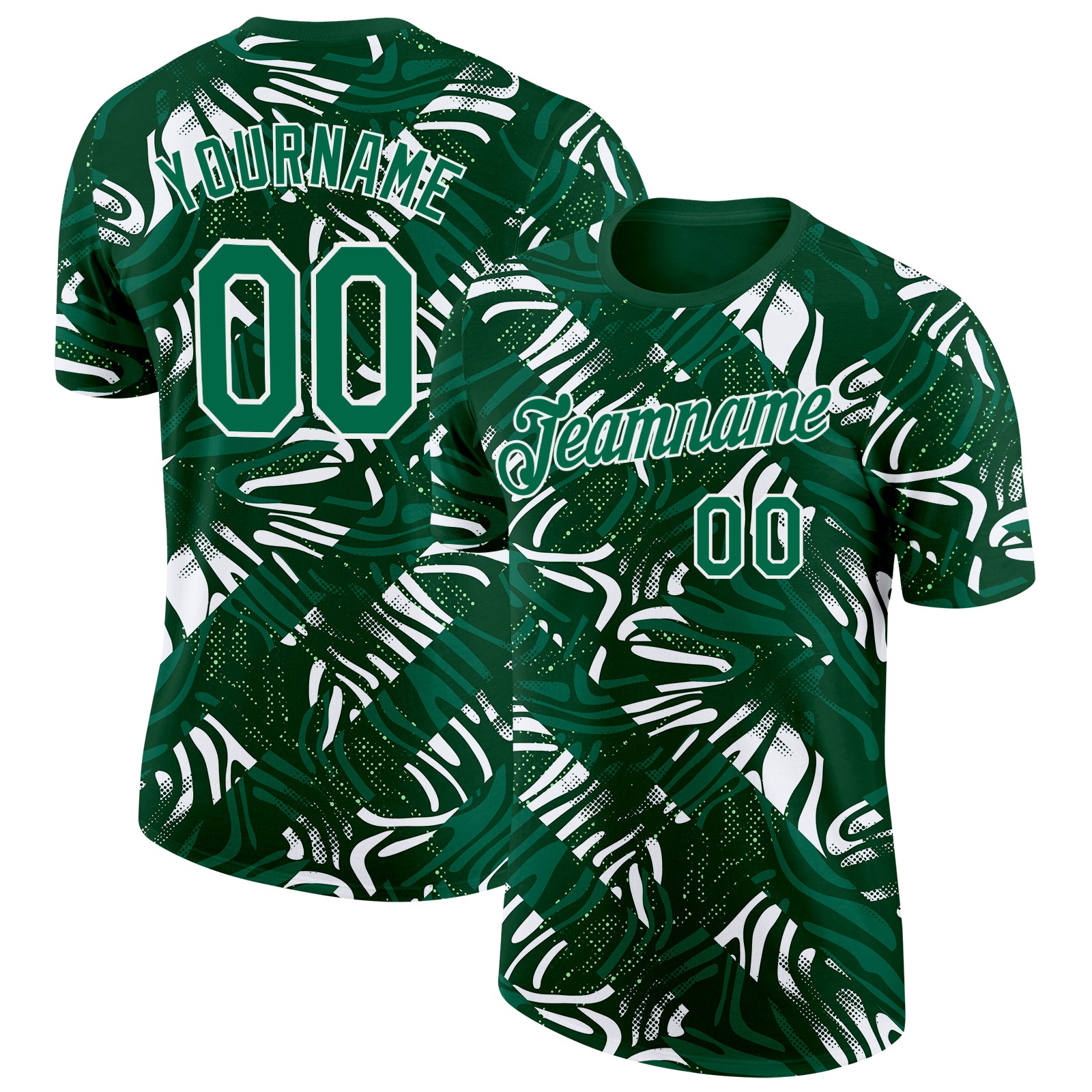 Custom Green Kelly Green-White Saudi Arabia Abstract Swirl Performance T-Shirt