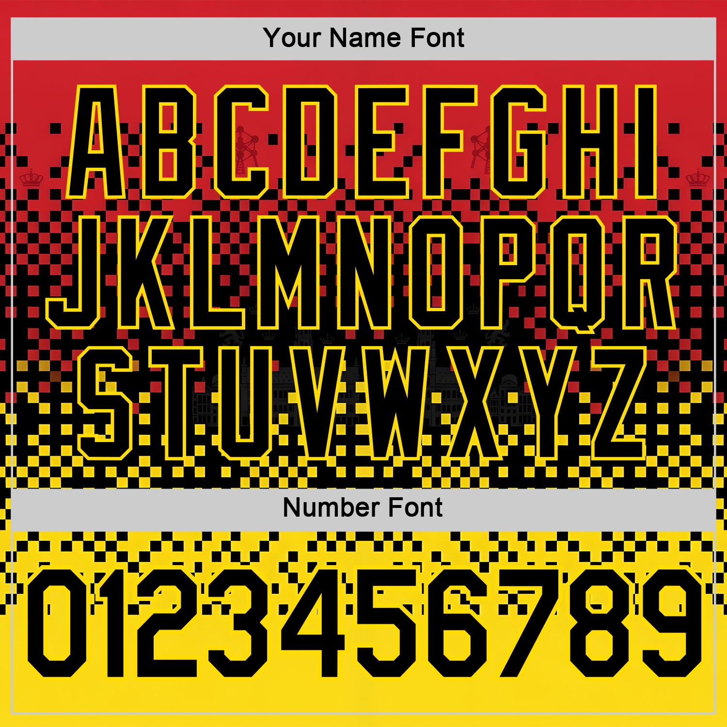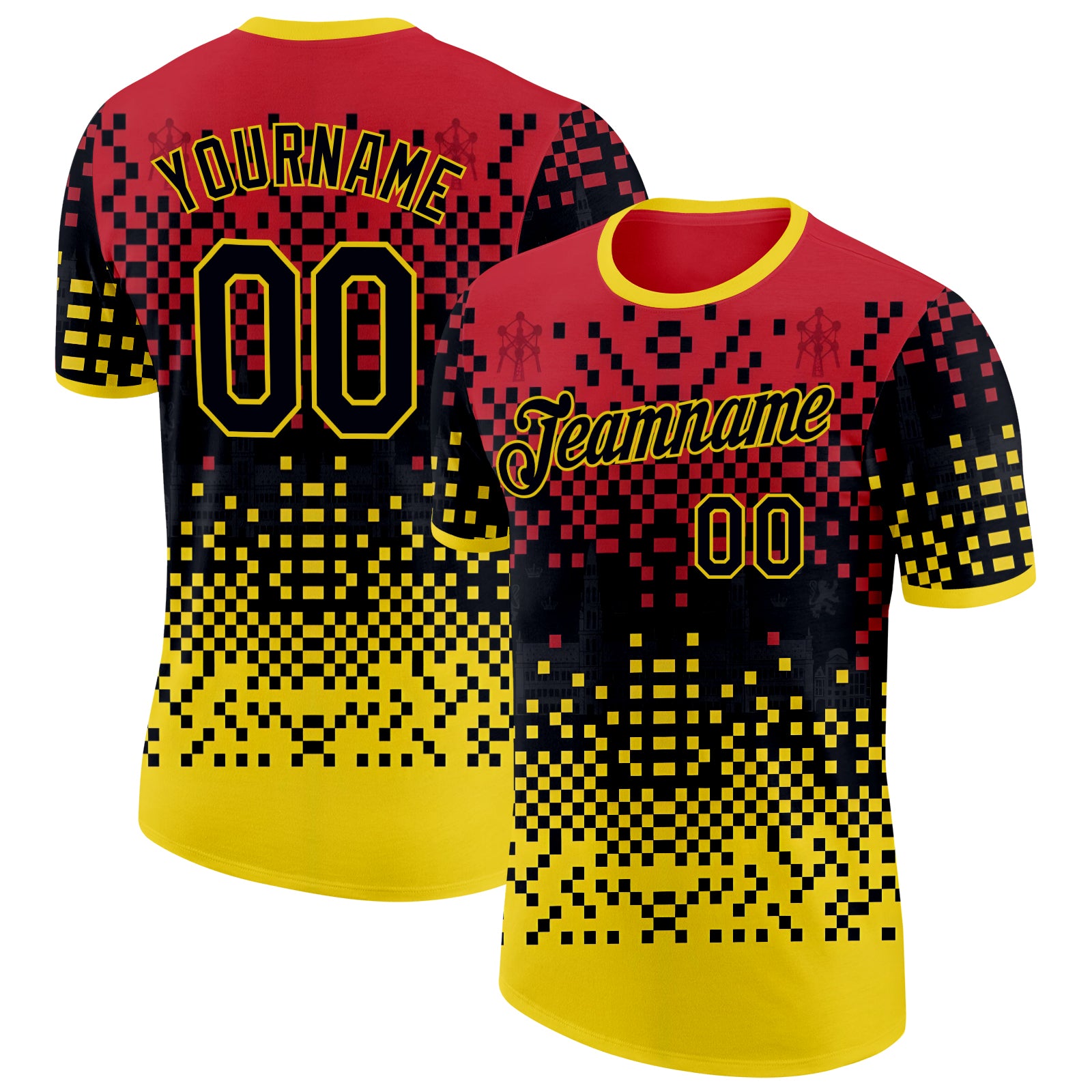 • Load image into Gallery viewer, Custom Red Black-Yellow Belgium Mosaic Performance T-Shirt