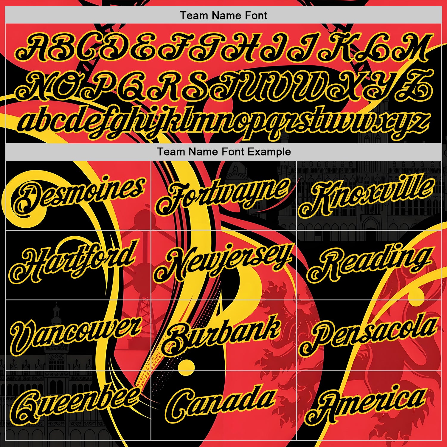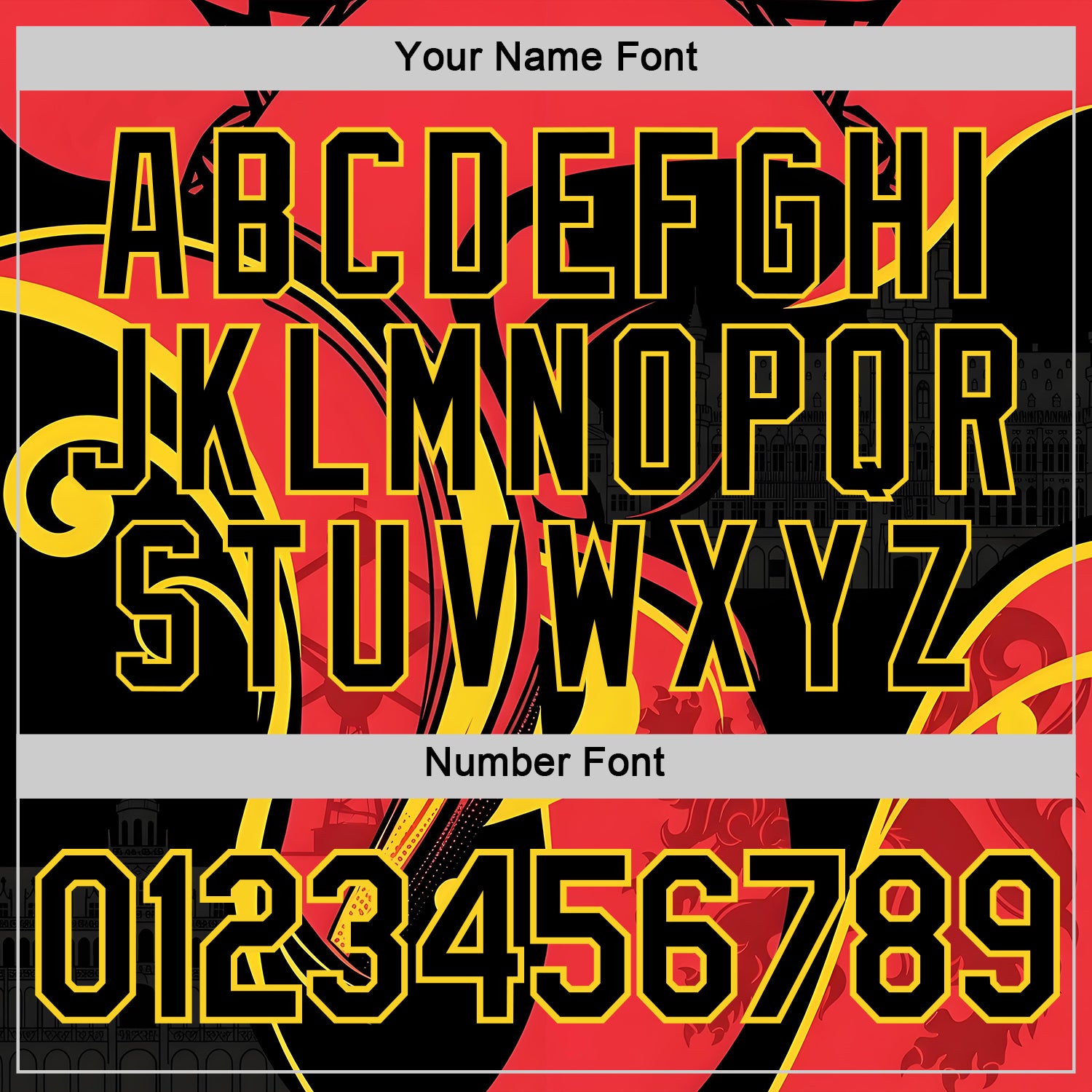 Custom Red Black-Yellow Belgium Abstract Performance T-Shirt