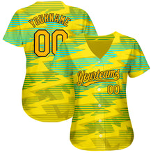 • Load image into Gallery viewer, Custom Gold Gold Black-Light Blue 3D Pattern Design Authentic Baseball Jersey