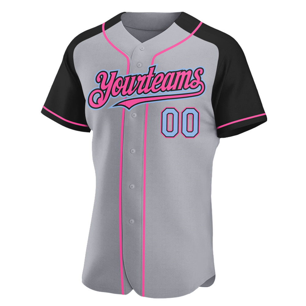 Custom Gray Light Blue Black-Pink Authentic Raglan Sleeves Baseball Jersey