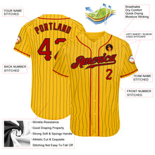 • Load image into Gallery viewer, Custom Yellow Black Pinstripe Red-Black Authentic Baseball Jersey