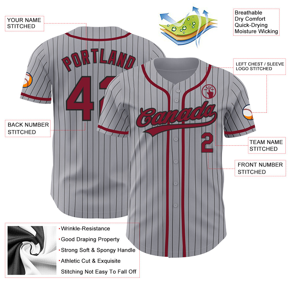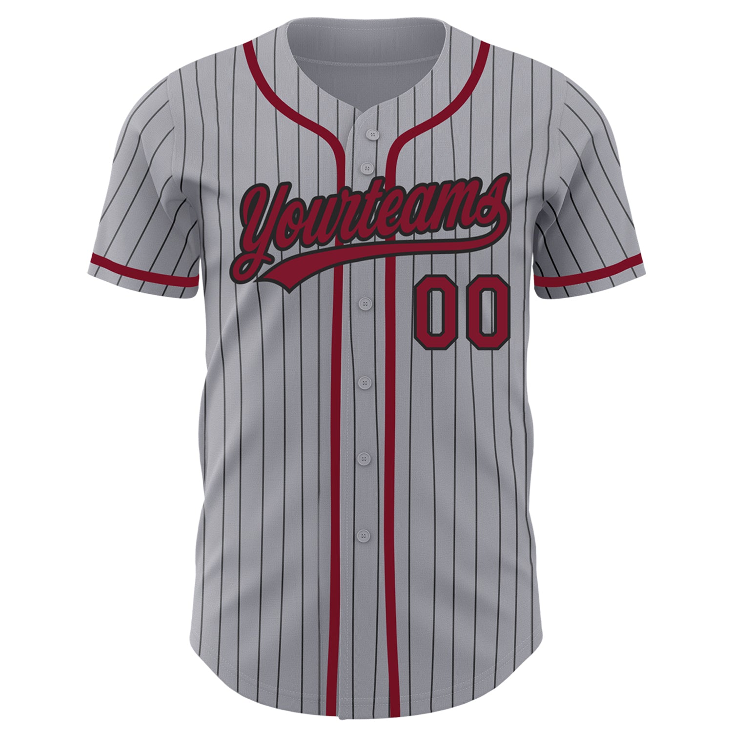 Custom Gray Black Pinstripe Crimson Authentic Baseball Jersey