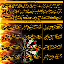 • Load image into Gallery viewer, Custom Black Gold 3D Pattern Design Fiery Dart Board Authentic Baseball Jersey