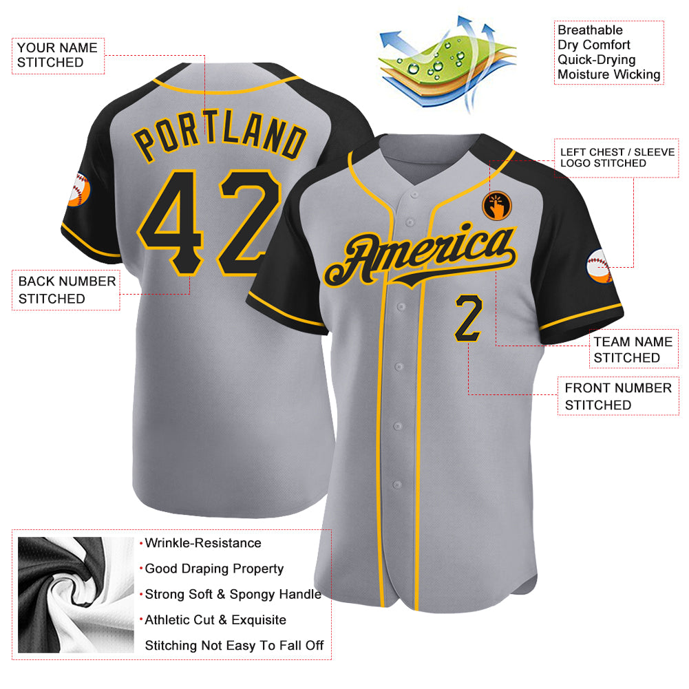 Custom Gray Black-Gold Authentic Raglan Sleeves Baseball Jersey