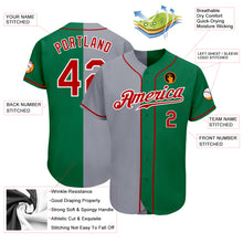 • Load image into Gallery viewer, Custom Kelly Green Red-Gray Authentic Split Fashion Baseball Jersey