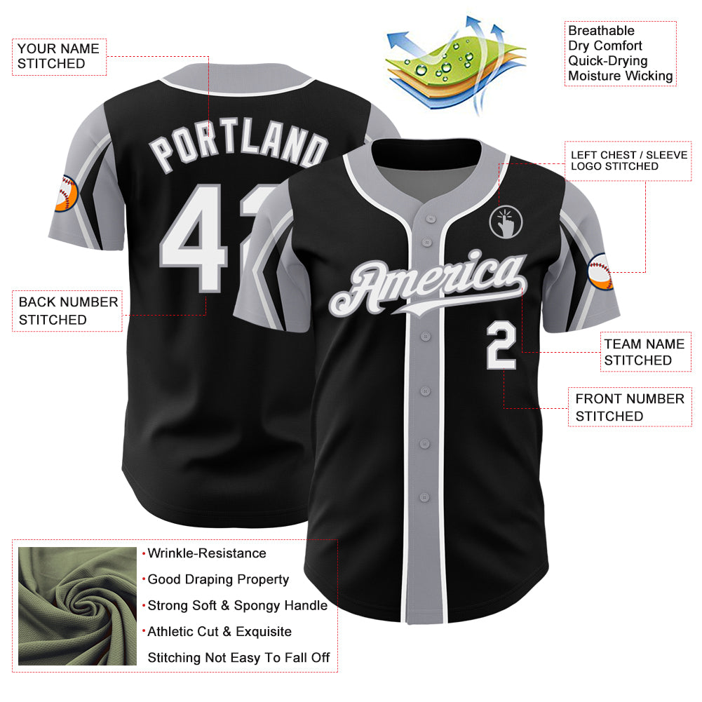 Custom Black White-Gray 3 Colors Arm Shapes Authentic Baseball Jersey