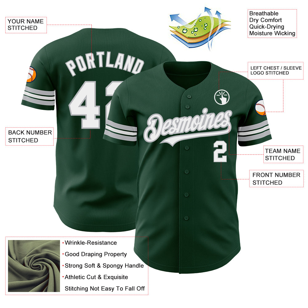 Custom Green White-Gray Authentic Baseball Jersey