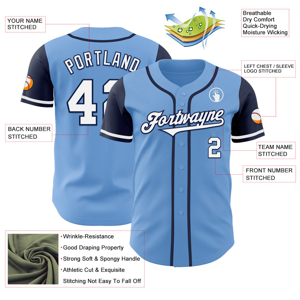 Custom Light Blue White-Navy Authentic Two Tone Baseball Jersey