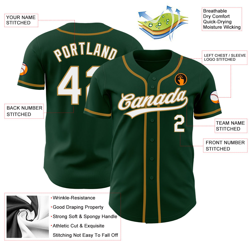 Custom Green White-Old Gold Authentic Baseball Jersey