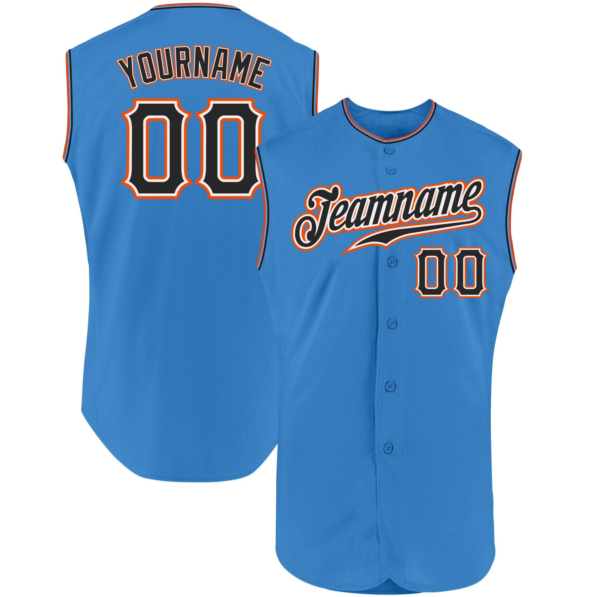 Custom Powder Blue Black-Orange Authentic Sleeveless Baseball Jersey