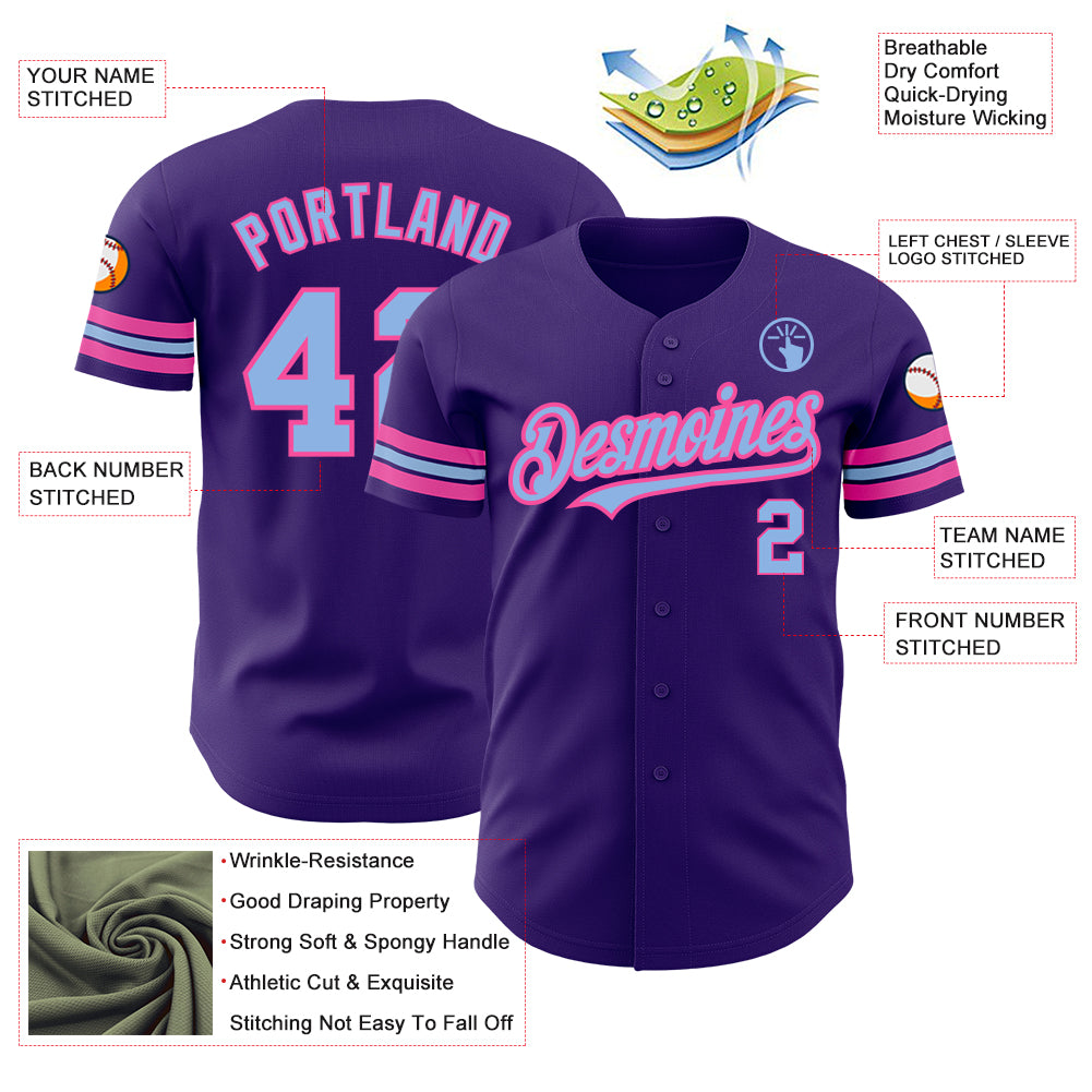 Custom Purple Light Blue-Pink Authentic Baseball Jersey