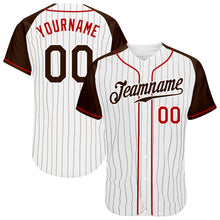 • Load image into Gallery viewer, Custom White Brown Pinstripe Brown-Red Authentic Raglan Sleeves Baseball Jersey