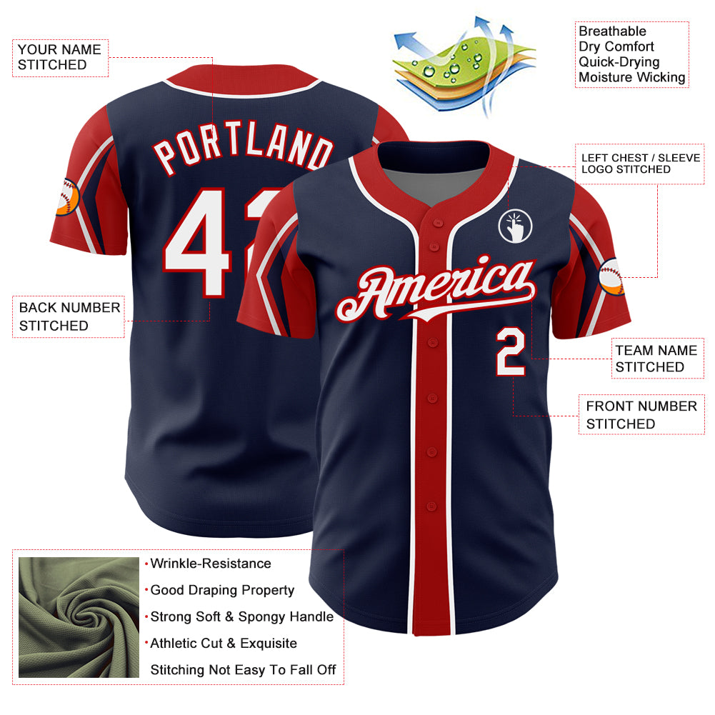 Custom Navy White-Red 3 Colors Arm Shapes Authentic Baseball Jersey