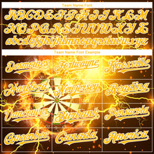 • Load image into Gallery viewer, Custom Black Gold-White 3D Pattern Design Lightning Flame Dart Board Authentic Baseball Jersey