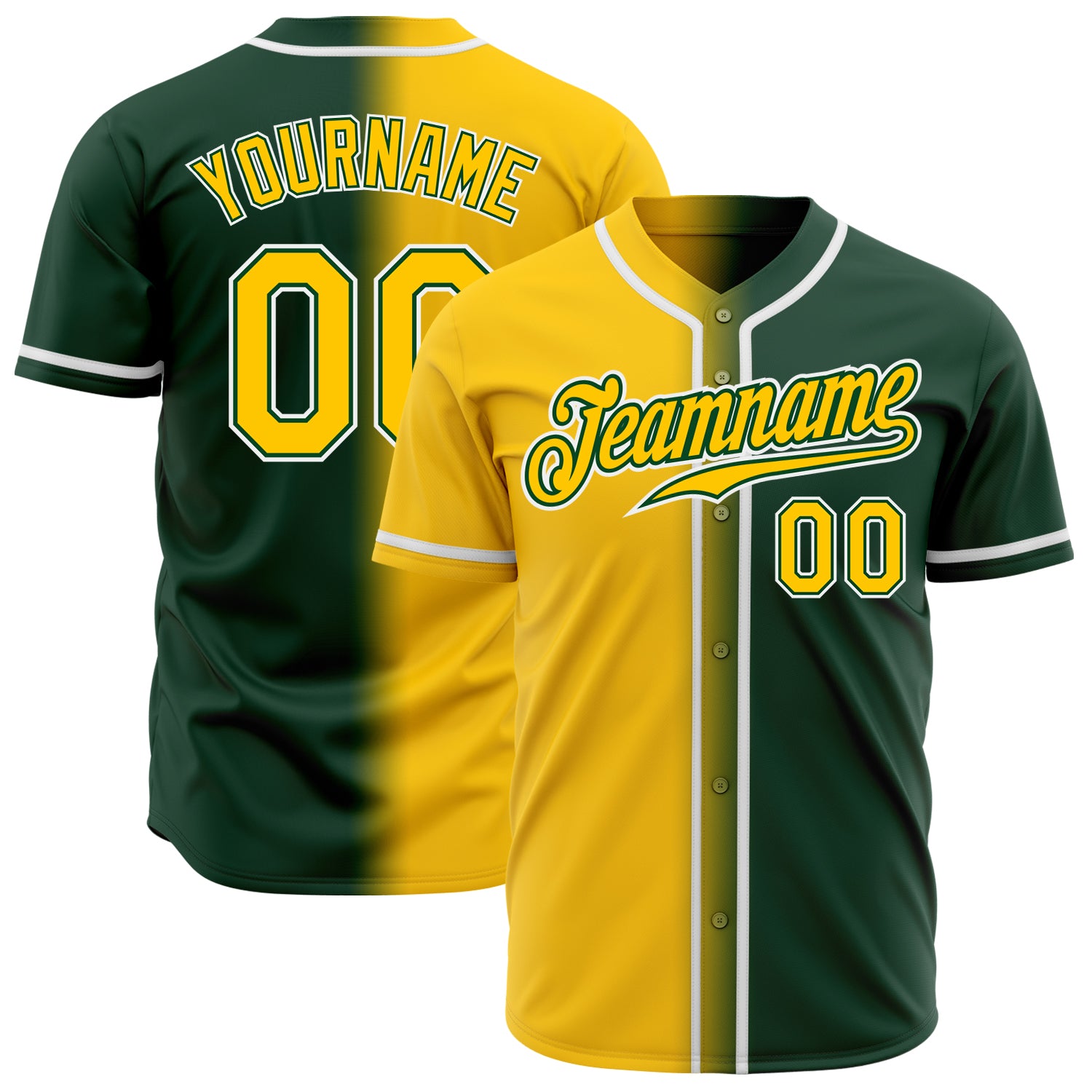 Custom Green Yellow-White Authentic Gradient Fashion Baseball Jersey