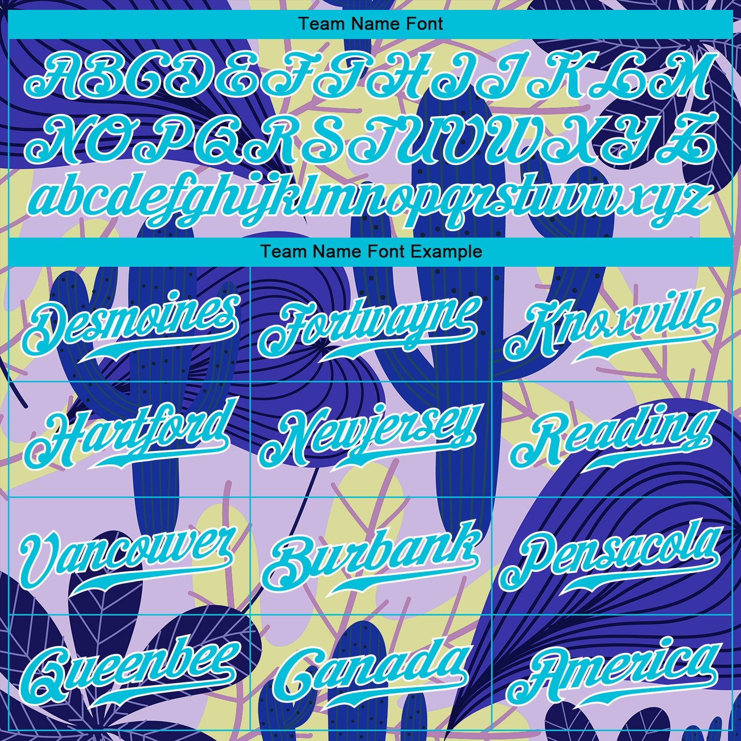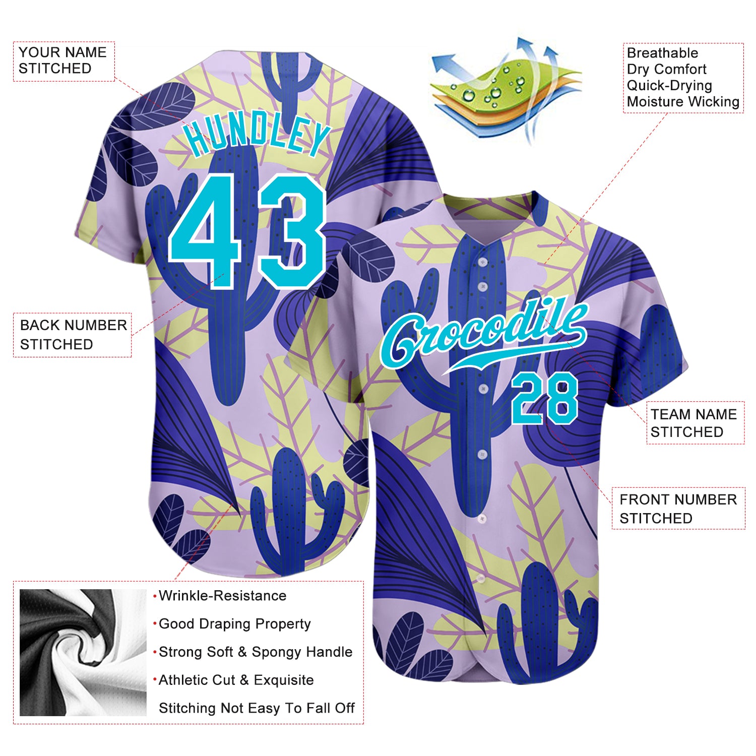 Custom Purple Lakes Blue-White 3D Pattern Design Cactus And Leaves Authentic Baseball Jersey