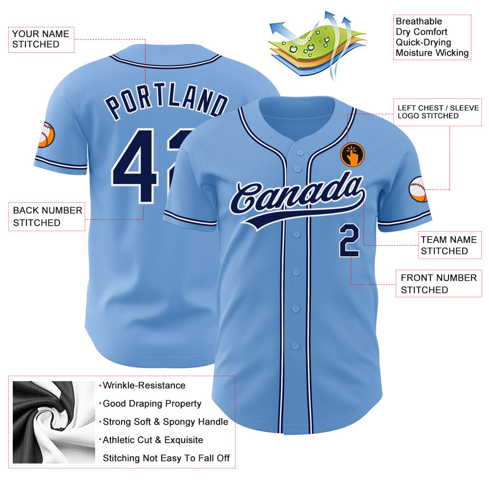 Custom Light Blue Navy-White Authentic Baseball Jersey
