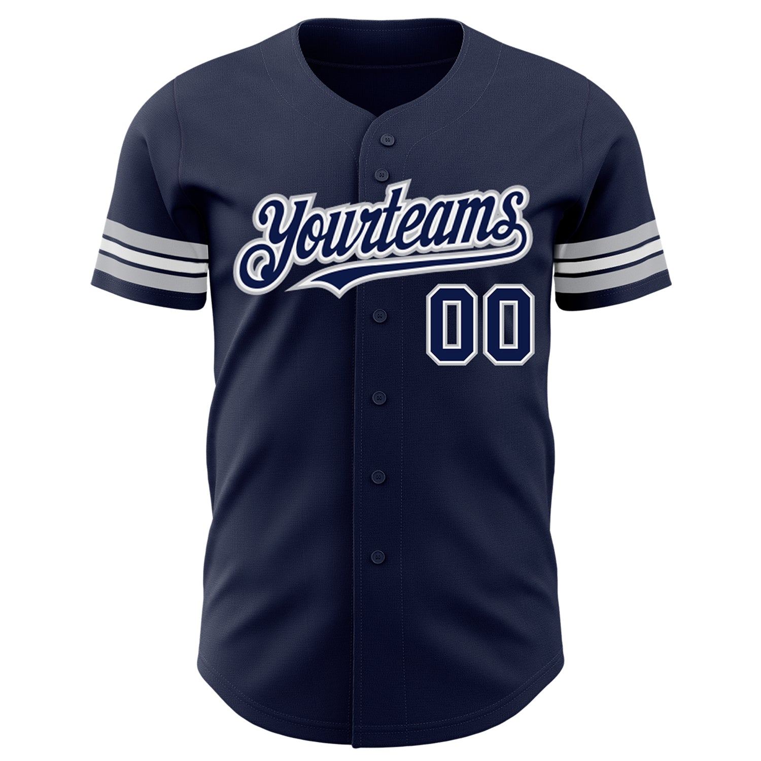 • Load image into Gallery viewer, Custom Navy White-Gray Authentic Baseball Jersey