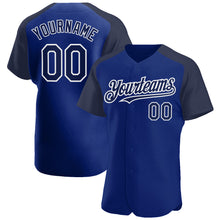 • Load image into Gallery viewer, Custom Royal Navy-White Authentic Raglan Sleeves Baseball Jersey