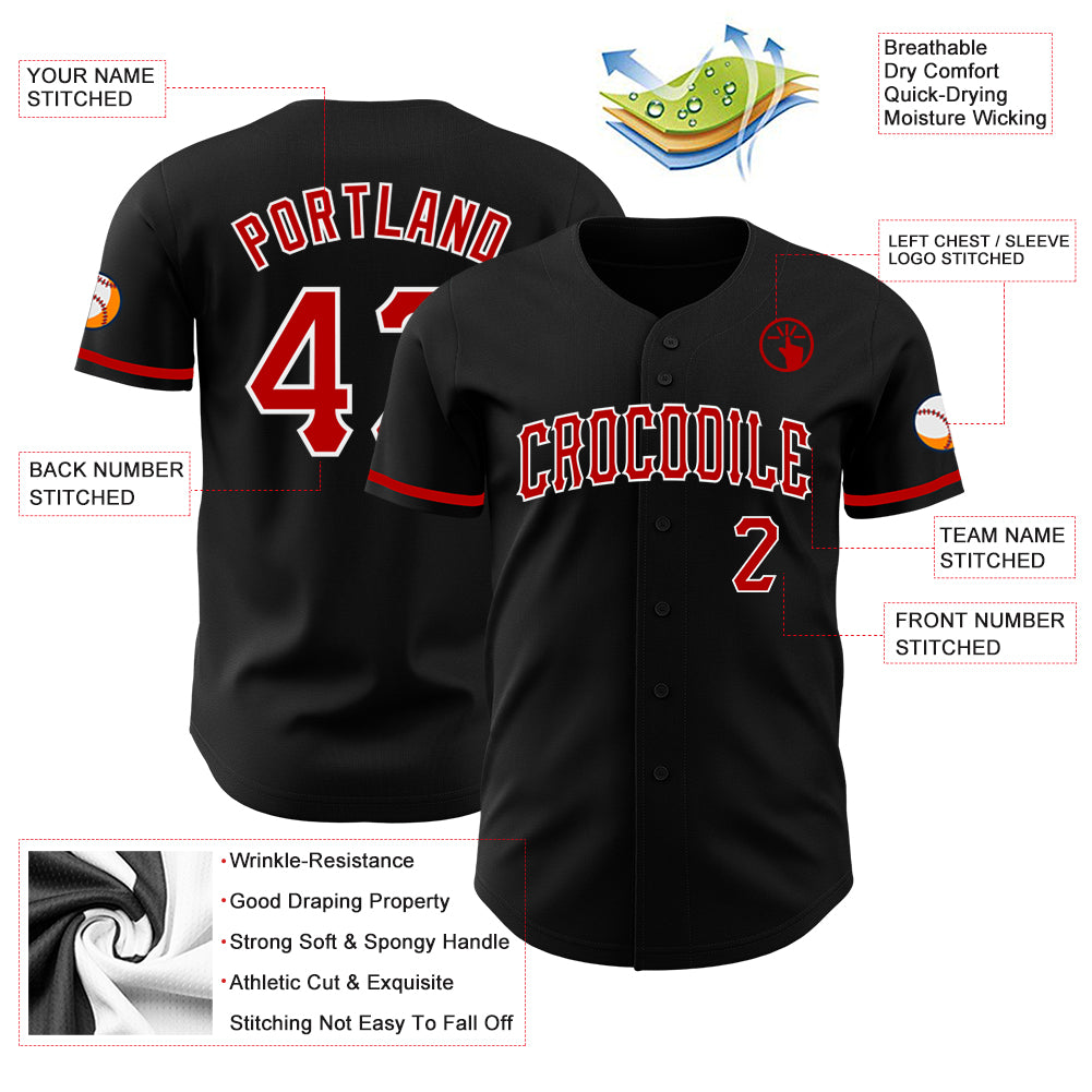 Custom Black Red-White Authentic Baseball Jersey