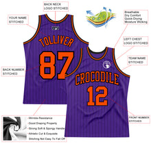 • Load image into Gallery viewer, Custom Purple Black Pinstripe Orange Authentic Basketball Jersey