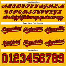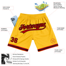 • Load image into Gallery viewer, Custom Gold Red-Black Authentic Throwback Basketball Shorts