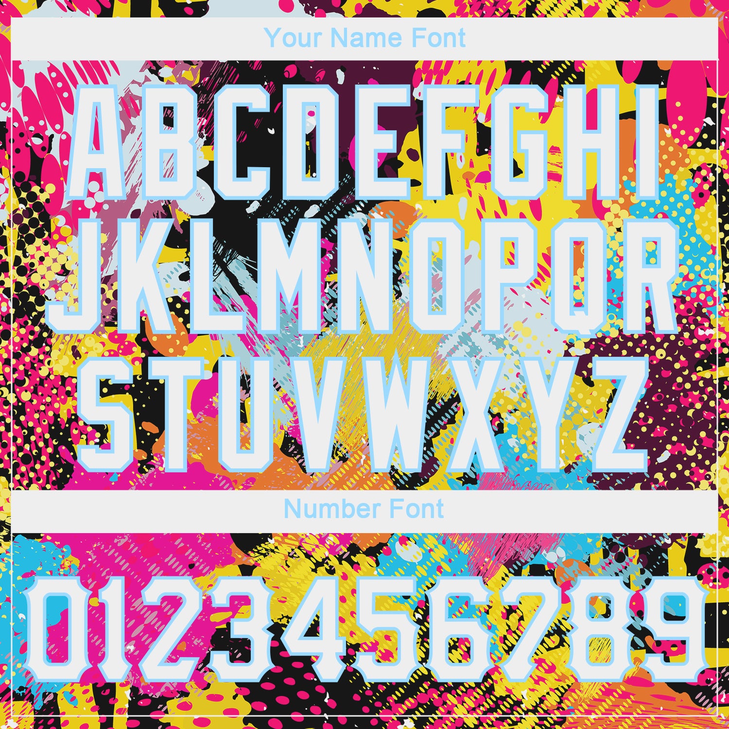 Custom Women's Graffiti Pattern White-Light Blue Bright Psychedelic 3D V-Neck Cropped Baseball Jersey