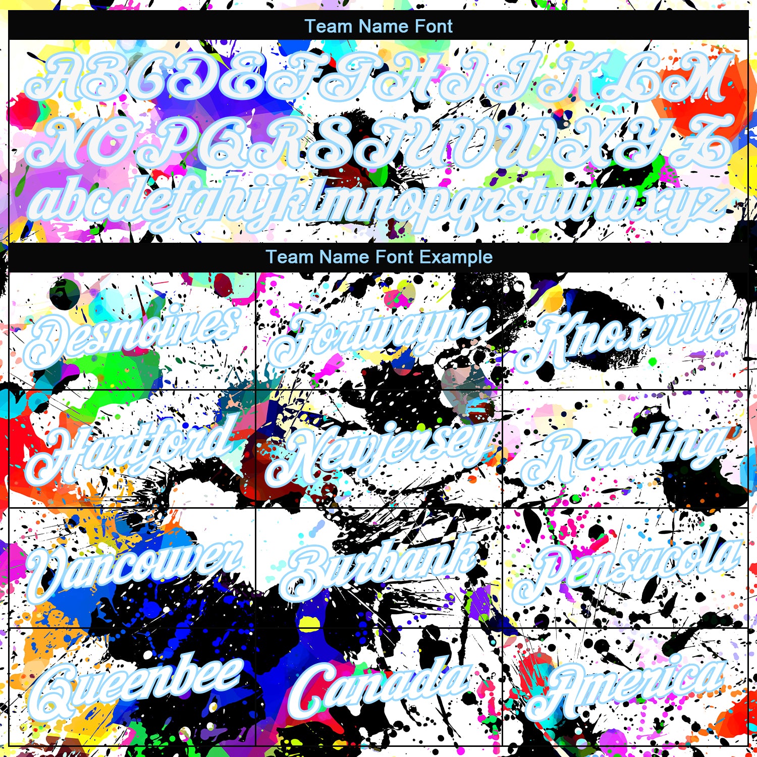 Custom Women's Graffiti Pattern White-Light Blue Splashes 3D V-Neck Cropped Baseball Jersey