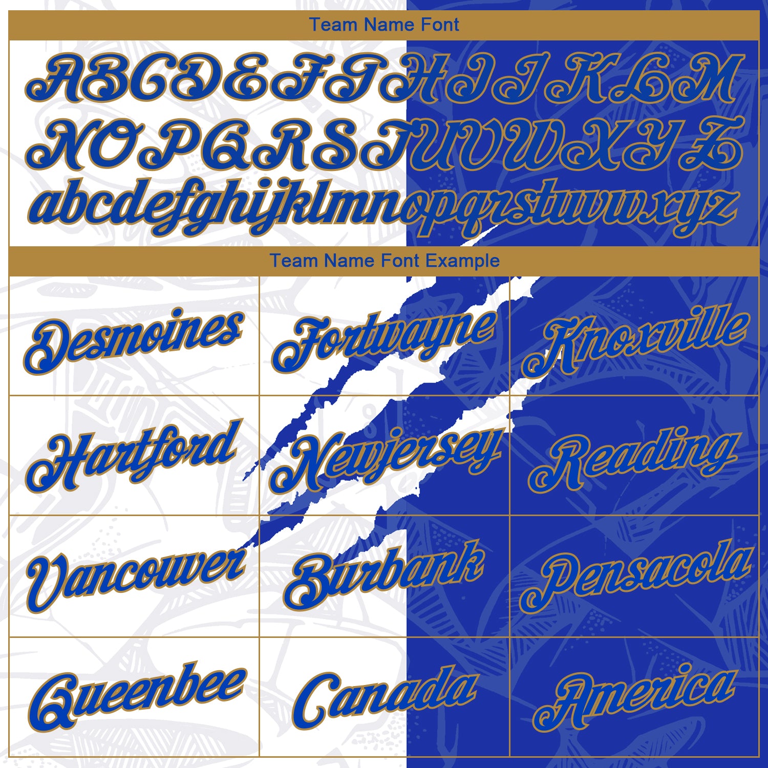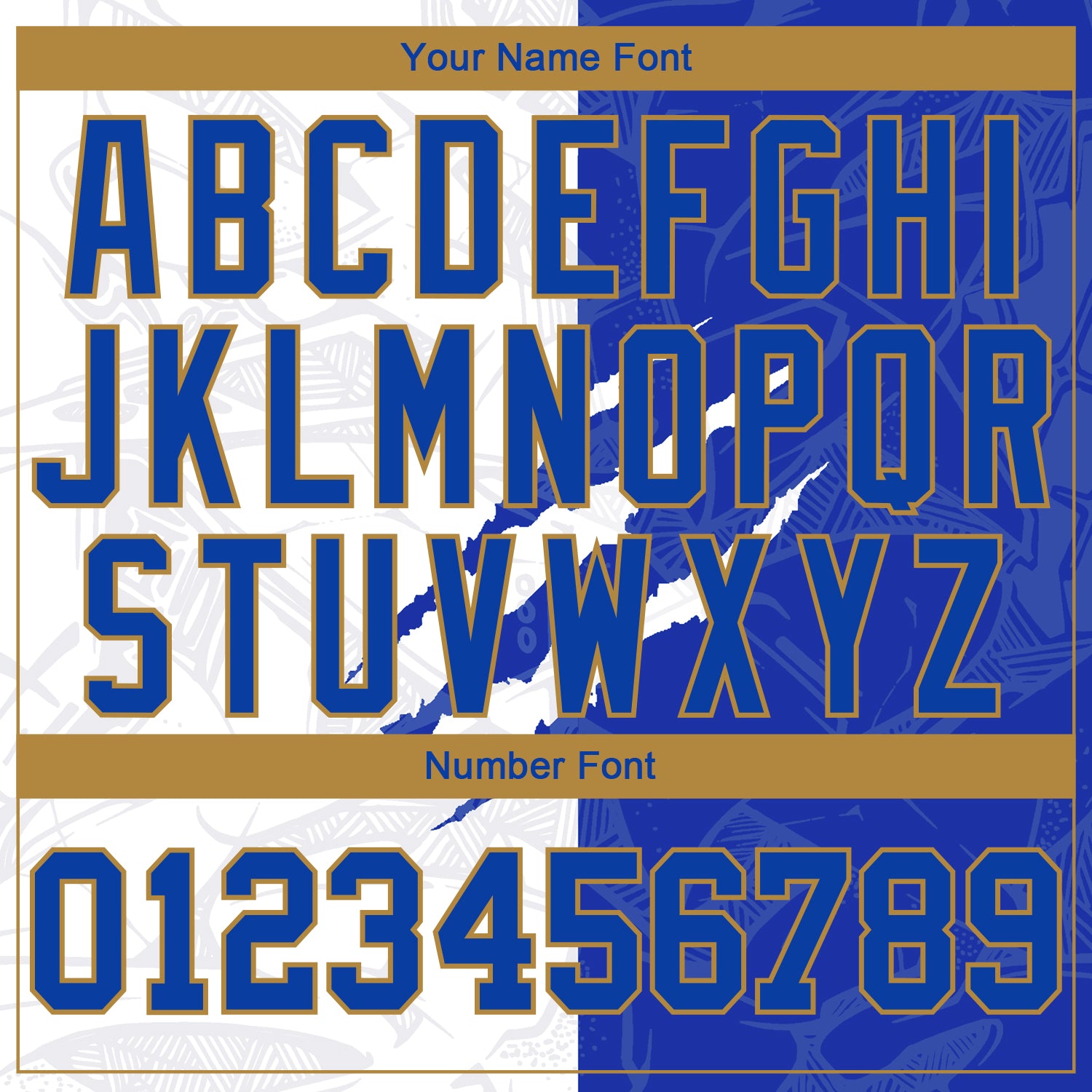 Custom Women's Graffiti Pattern Royal-Old Gold Scratch 3D V-Neck Cropped Baseball Jersey