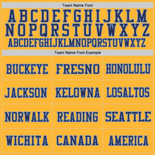 • Load image into Gallery viewer, Custom Gold Navy-Light Blue Mesh Authentic Throwback Football Jersey