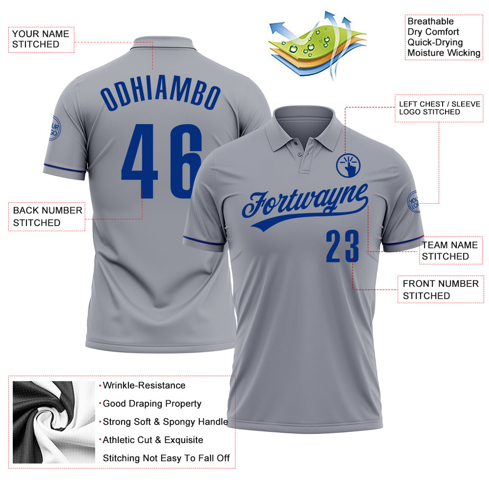 Custom Gray Royal Performance Vapor Golf Polo Shirt