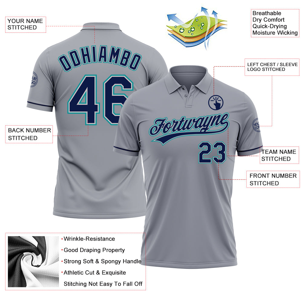Custom Gray Navy-Teal Performance Vapor Golf Polo Shirt