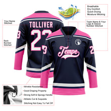 • Load image into Gallery viewer, Custom Navy White-Pink Hockey Lace Neck Jersey