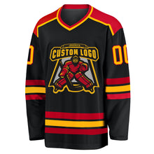 • Load image into Gallery viewer, Custom Black Gold-Red Hockey Jersey