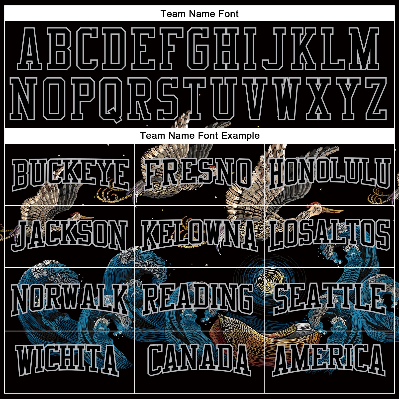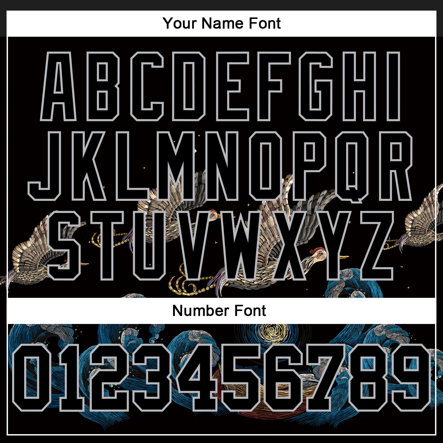 Custom Stitched Black Gray 3D Pattern Design Crane And Wave Sports Pullover Sweatshirt Hoodie