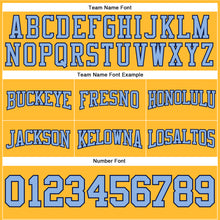 • Load image into Gallery viewer, Custom Stitched Gold Light Blue-Navy Football Pullover Sweatshirt Hoodie