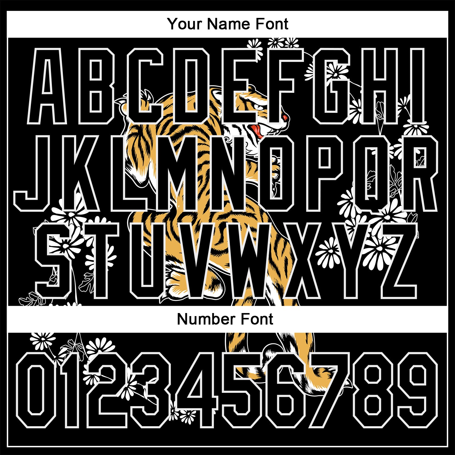 Custom Stitched Black White 3D Pattern Design Tiger And Daisy Sports Pullover Sweatshirt Hoodie
