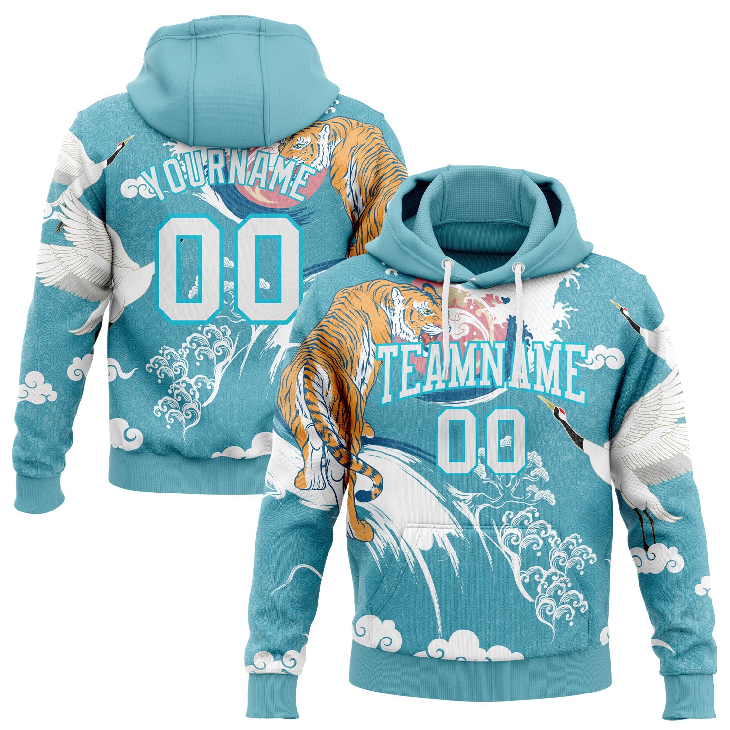 Custom Stitched Lakes Blue White 3D Pattern Design Crane And Tiger Sports Pullover Sweatshirt Hoodie