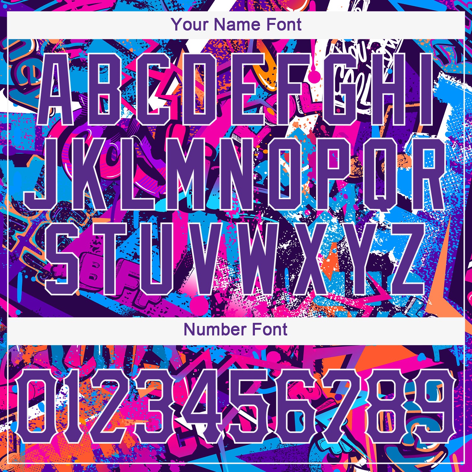 Custom Stitched Graffiti Pattern Purple-White 3D Sports Pullover Sweatshirt Hoodie