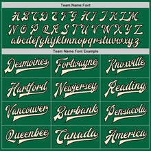 • Load image into Gallery viewer, Custom Kelly Green Cream-Black Bomber Full-Snap Varsity Letterman Jacket