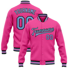 • Load image into Gallery viewer, Custom Pink Light Blue-Black Bomber Full-Snap Varsity Letterman Jacket