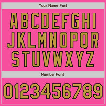 • Load image into Gallery viewer, Custom Pink Old Gold-Black Bomber Full-Snap Varsity Letterman Jacket