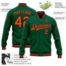 • Load image into Gallery viewer, Custom Kelly Green Orange-Black Bomber Full-Snap Varsity Letterman Jacket