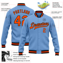 • Load image into Gallery viewer, Custom Light Blue Orange-Black Bomber Full-Snap Varsity Letterman Jacket
