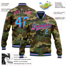 • Load image into Gallery viewer, Custom Camo Sky Blue Black-Pink Bomber Full-Snap Varsity Letterman Salute To Service Jacket