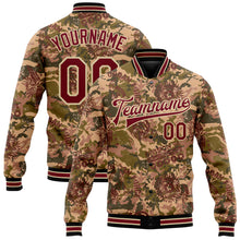 • Load image into Gallery viewer, Custom Camo Crimson City Cream-Black Military Badge 3D Pattern Design Bomber Full-Snap Varsity Letterman Salute To Service Jacket