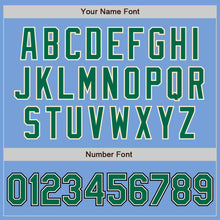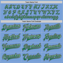 • Load image into Gallery viewer, Custom Light Blue Kelly Green Cream-Black Bomber Full-Snap Varsity Letterman Jacket