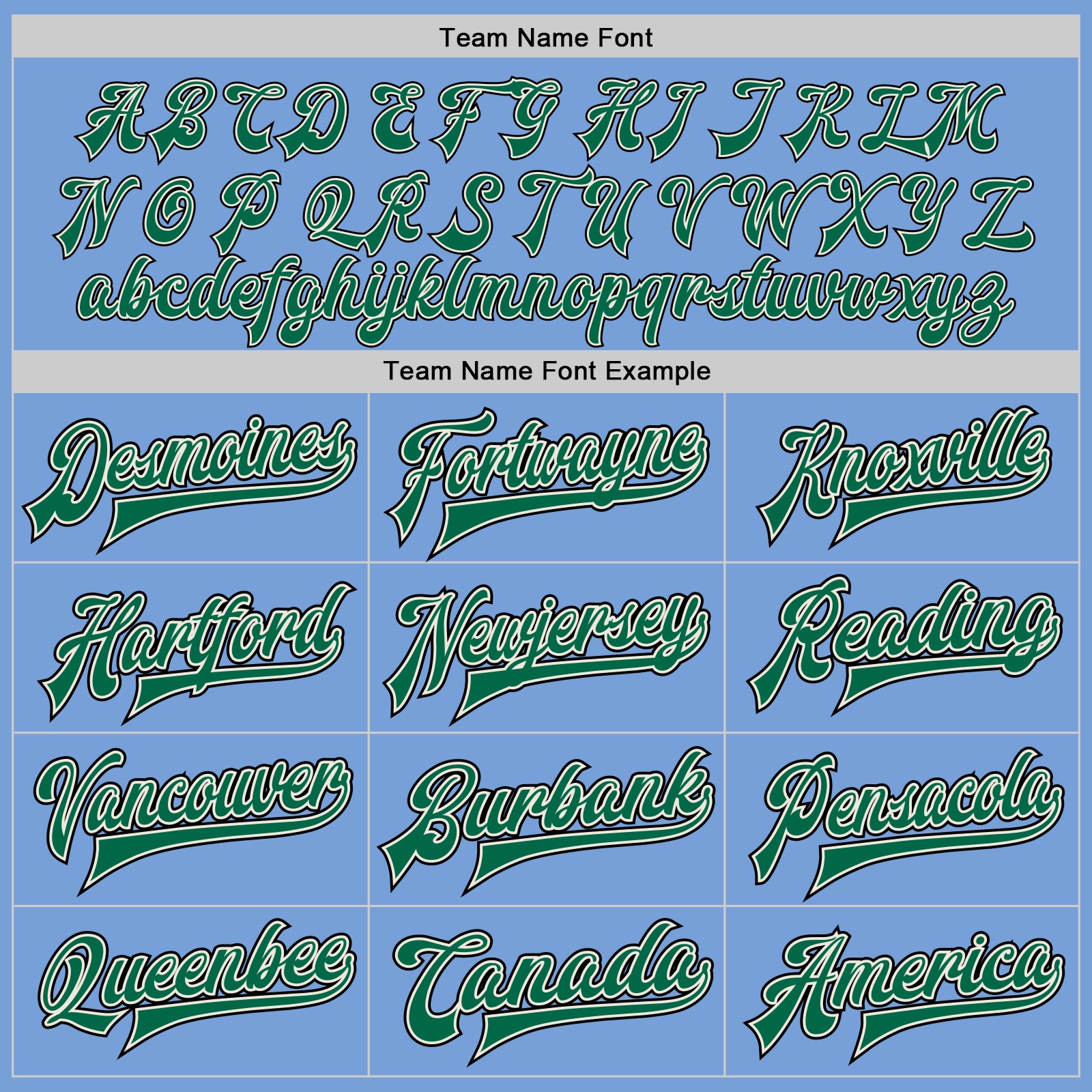 Custom Light Blue Kelly Green Cream-Black Bomber Full-Snap Varsity Letterman Jacket